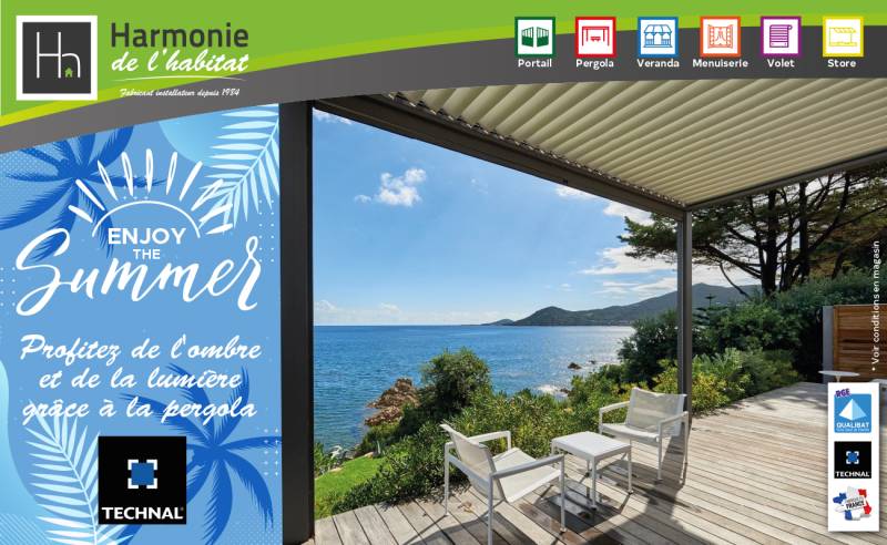 Durant tous l'été, venez découvrir la Pergola Bioclimatique TECHNAL chez Harmonie de l'Habitat !